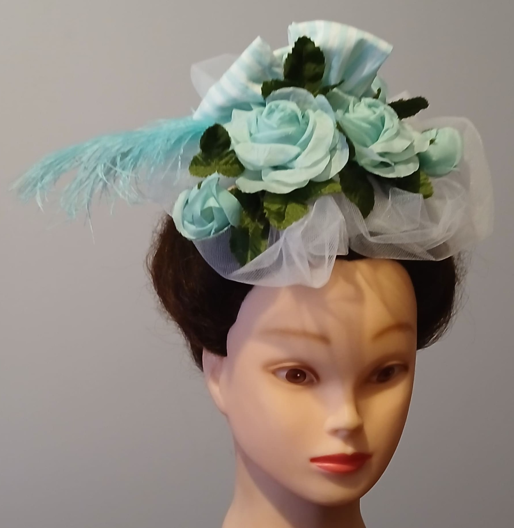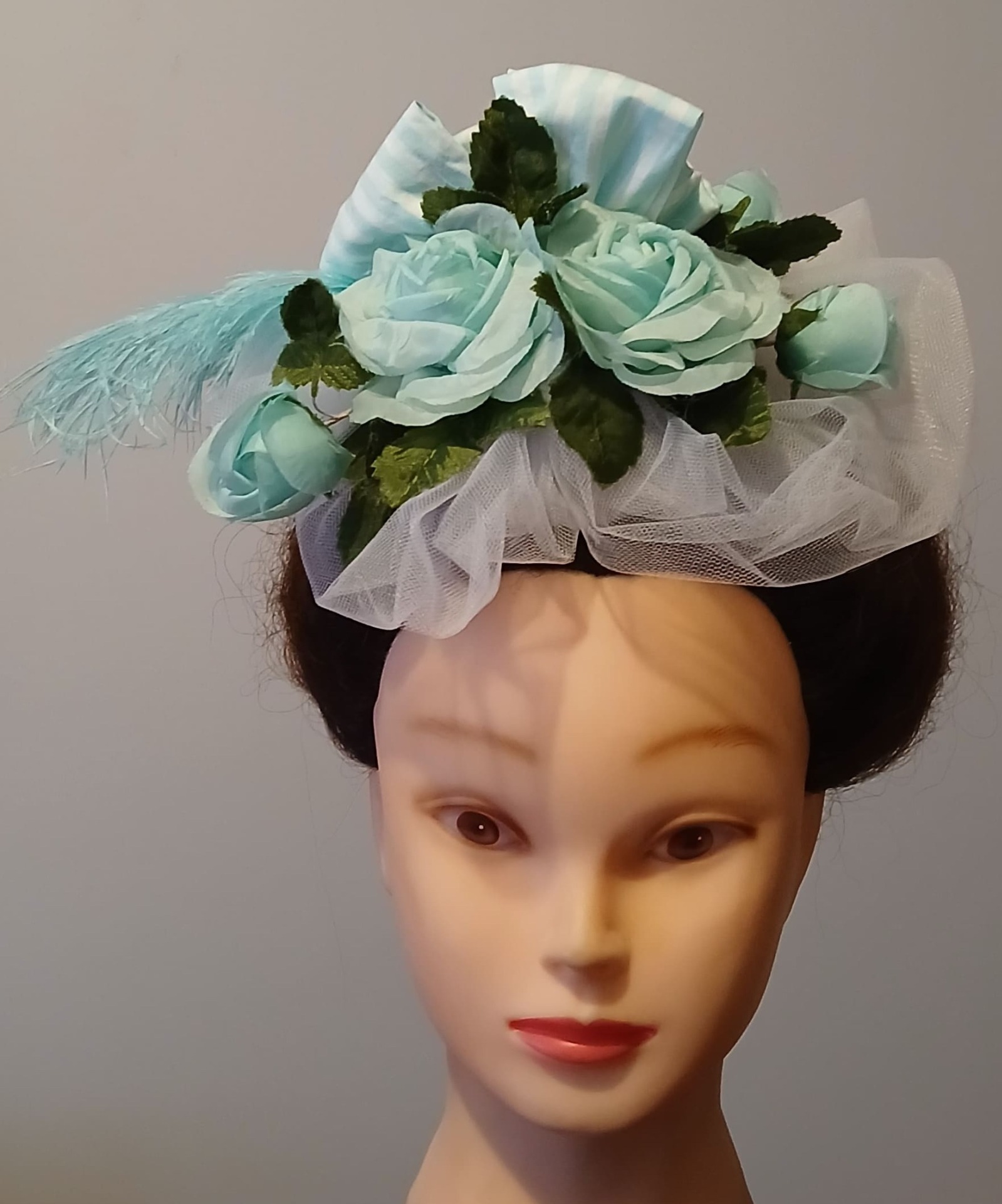Roses en soie verte et plumes d'autruche teintées vertes.